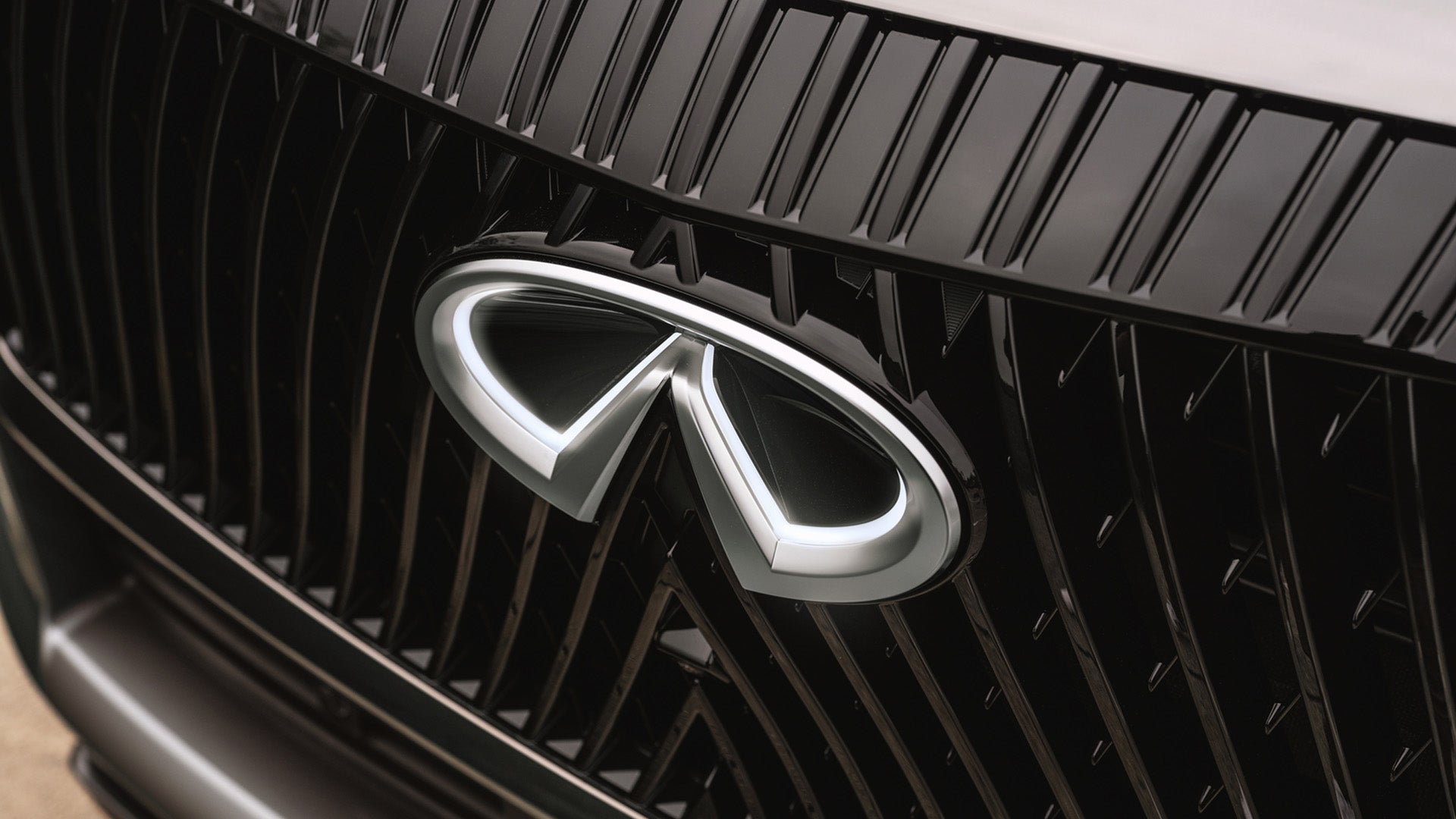 Lidera desde el frente con una presencia imponente gracias a la impresionante parrilla de doble arco rediseñada, inspirada en el bosque de bambú de Kioto y destacada por el nuevo emblema iluminado 3D INFINITI Radiant®, junto al juego rítmico de luces de los faros delanteros Digital Piano Key.